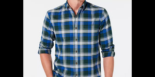Club Room Men's Plaid Classic Fit Button Down Flannel Casual Shirt Green Size Small
