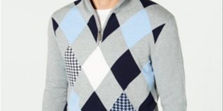 Club Room Men's Pima Argyle Quarter-Zip Sweater Gray Size 3XL