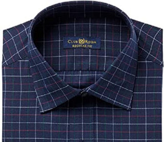 Club Room Men's Classic/Regular Fit Performance Windowpane Dress Shirt Navy Size 34-35