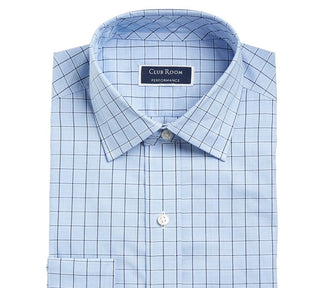 Club Room Men's Classic/Regular Fit Performance Windowpane Dress Shirt Navy Size 15X32-33