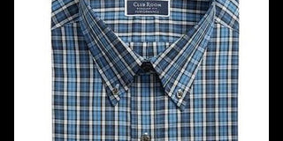 Club Room Men's Classic/Regular Fit Stretch Blackwatch Tartan Dress Shirt Blue Size 34X35