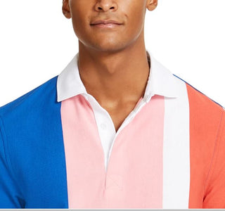 Club Room Men's Vertical Stripe Long Sleeve Rugby Shirt Pink Size X-Large