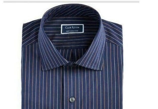 Club Room Men's Classic/Regular Fit Stripe Dress Shirt Navy Size 32-33