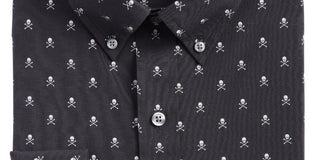 Club Room Men's Slim Fit Skull Print Button Down Shirt Black Size Medium