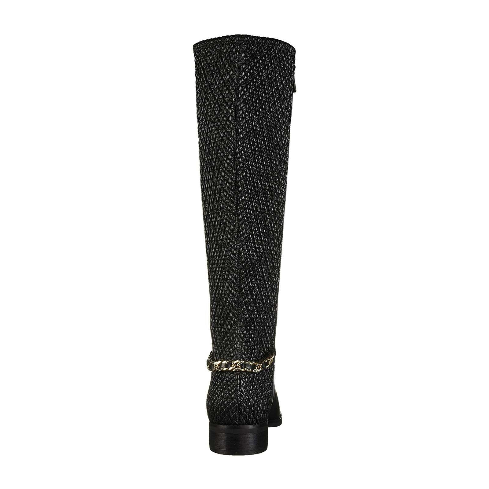 Leather and stretch quilt upper| Fully lined| Grand|Os cushioning| Rubber outsole for added comfort| traction and durability| Woven leather metal chain design detail Idina group serves as a key design detail for the F19 season