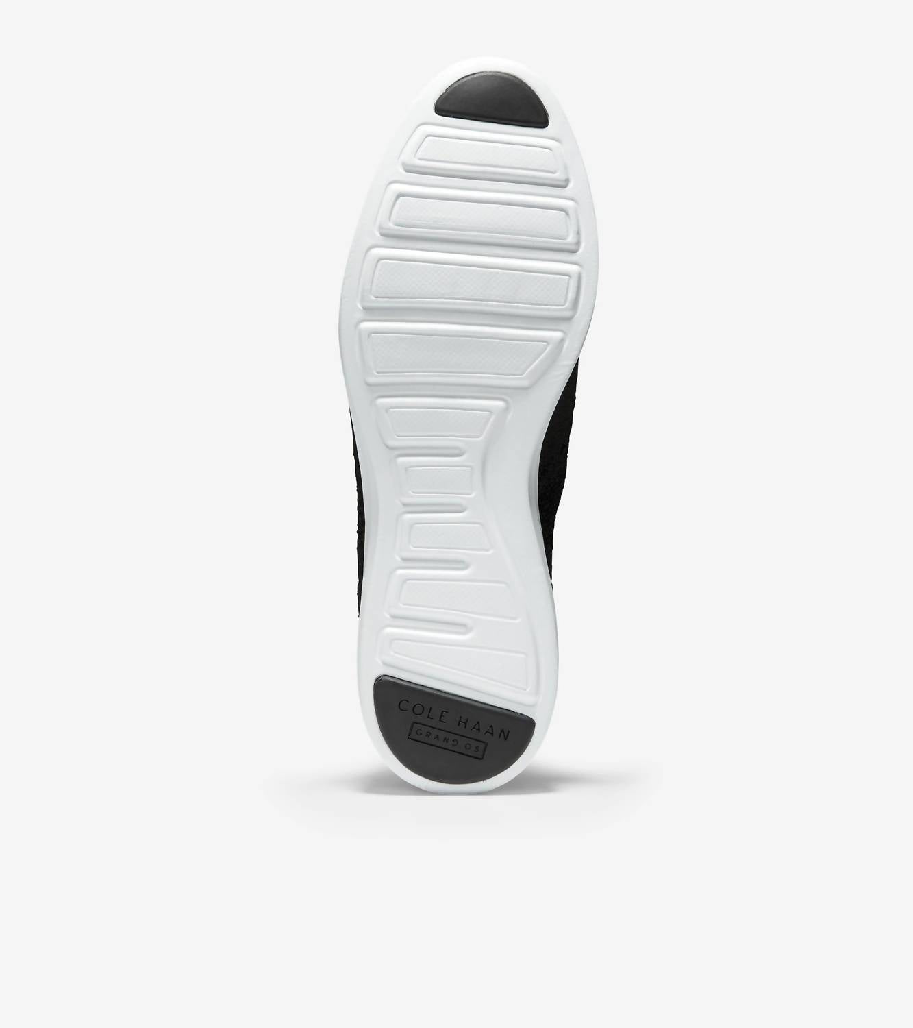 Step into style with the Women's Original Grand Stitchlite Wingstop Oxford by COLE HAAN, perfect for a summer holiday party. Crafted with an all-over knit oxford upper, these black medium-width flats ensure comfort with a padded sock lining and a cushioned EVA midsole featuring Grand.S technology. The flat heel and almond toe shape offer a sleek silhouette, while the rubber outsole provides durability. Ideal for adult women seeking chic streetwear for festive occasions. Style #: W14807.