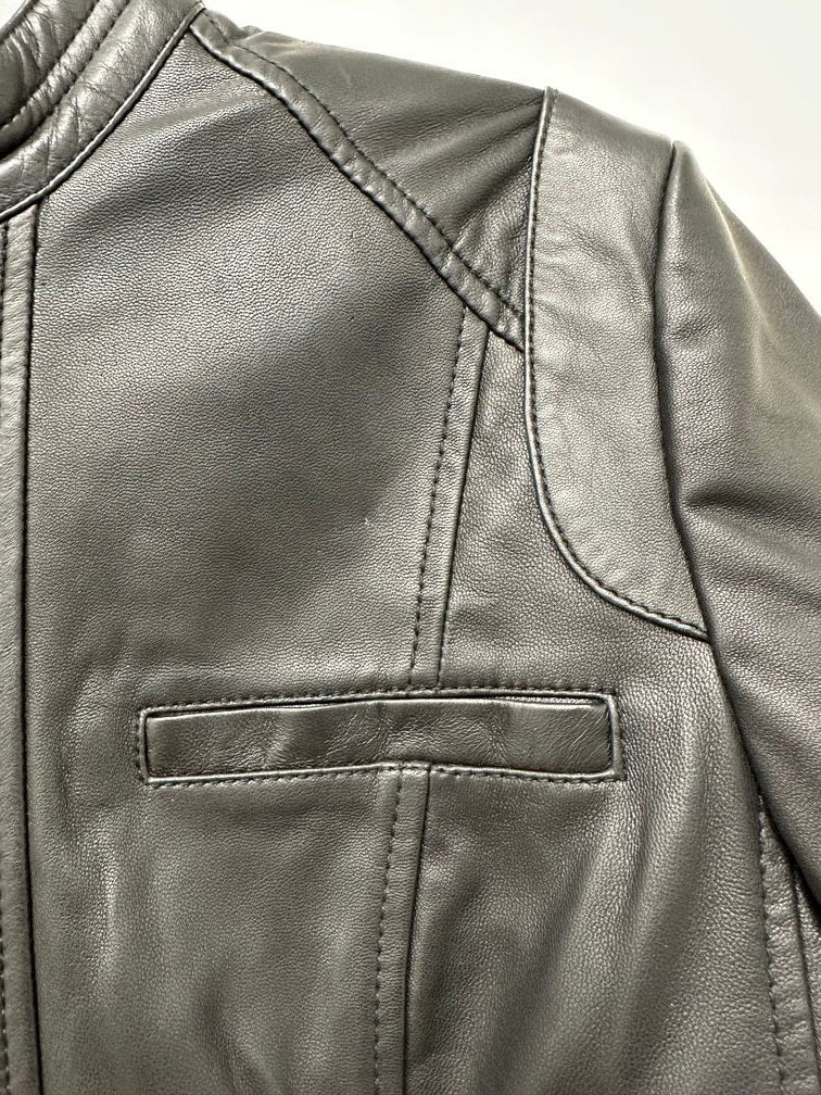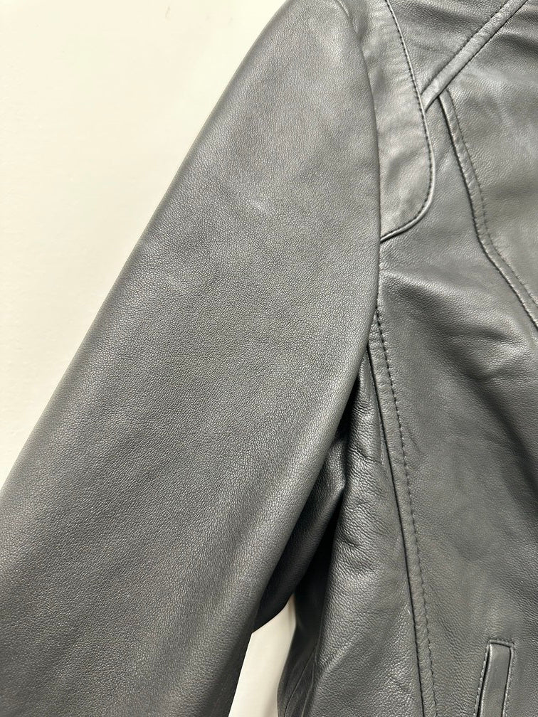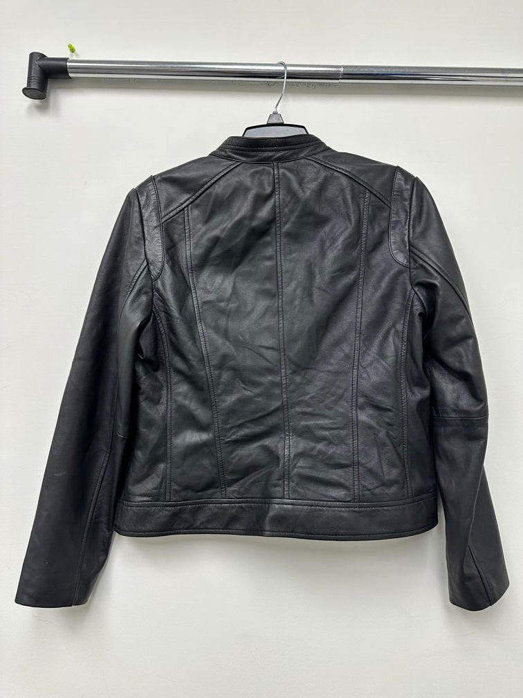 Cole Haan Women's Stand-Collar Leather Moto Coat Black Size Large