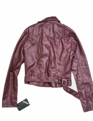 Collection B Juniors' Faux-Leather Belted Moto Jacket Wine Size Medium