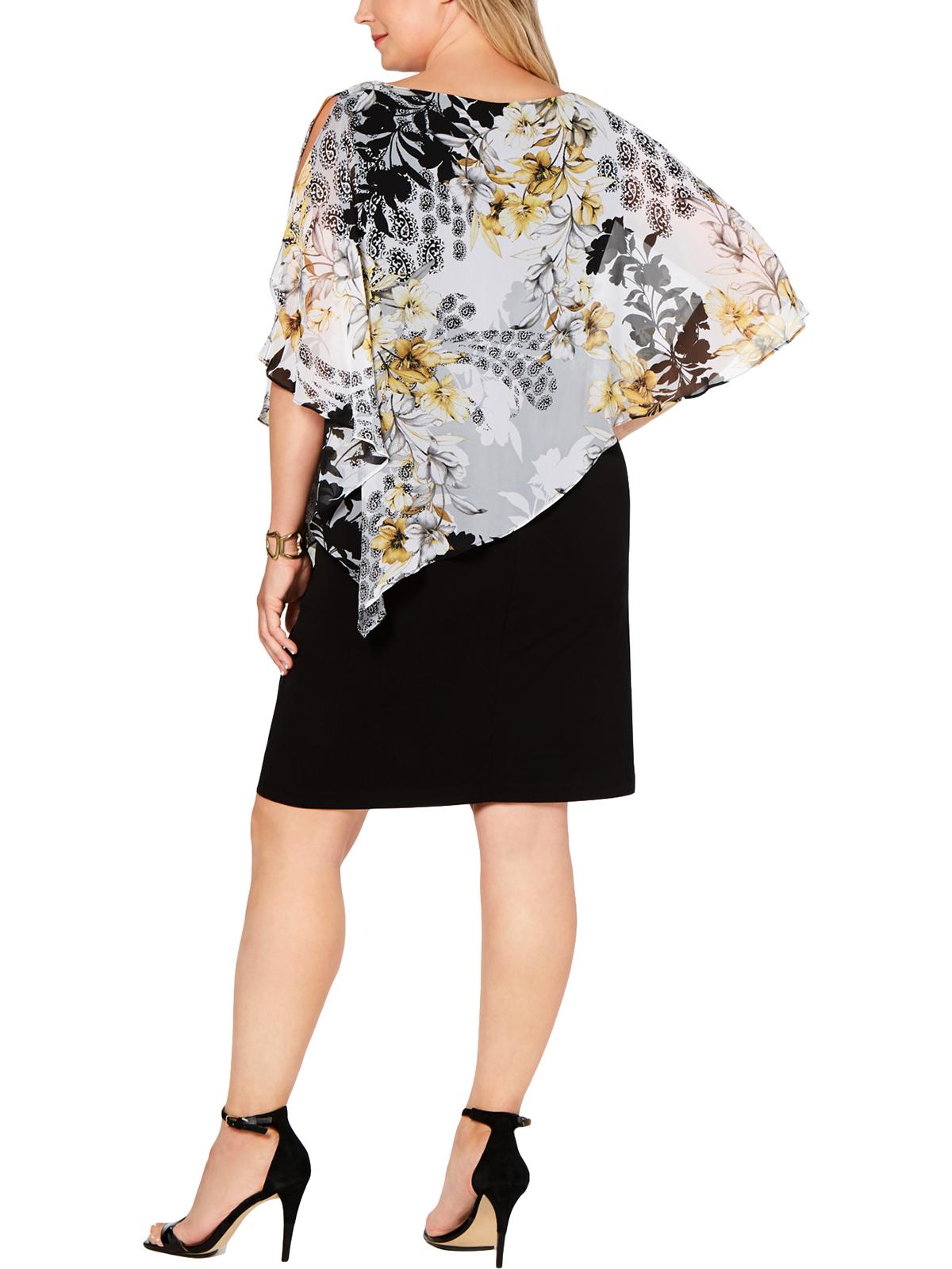 Connected Apparel Women's Floral Kimono Sleeve Above the Knee Cocktail Shift Dress Black 18W