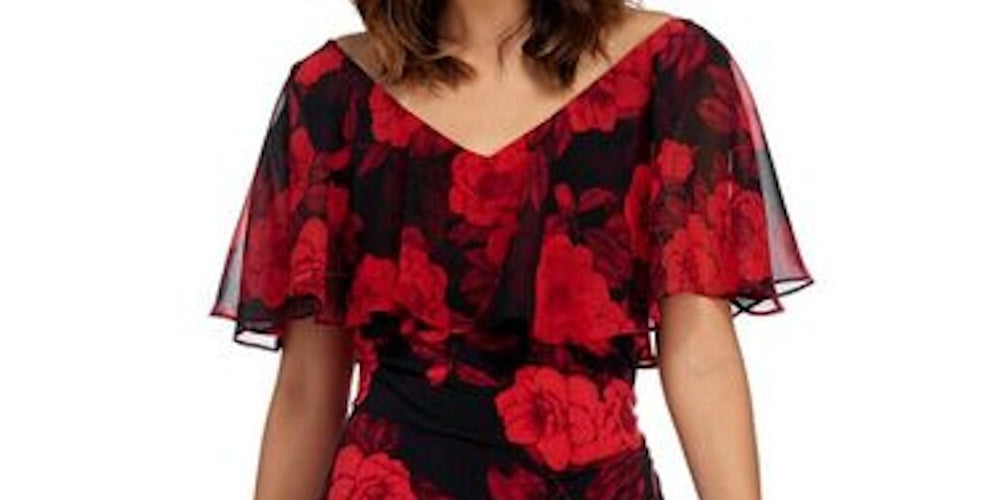 Connected Apparel Women's Petite Rose Flounce Sleeve Dress Red Size 10 P