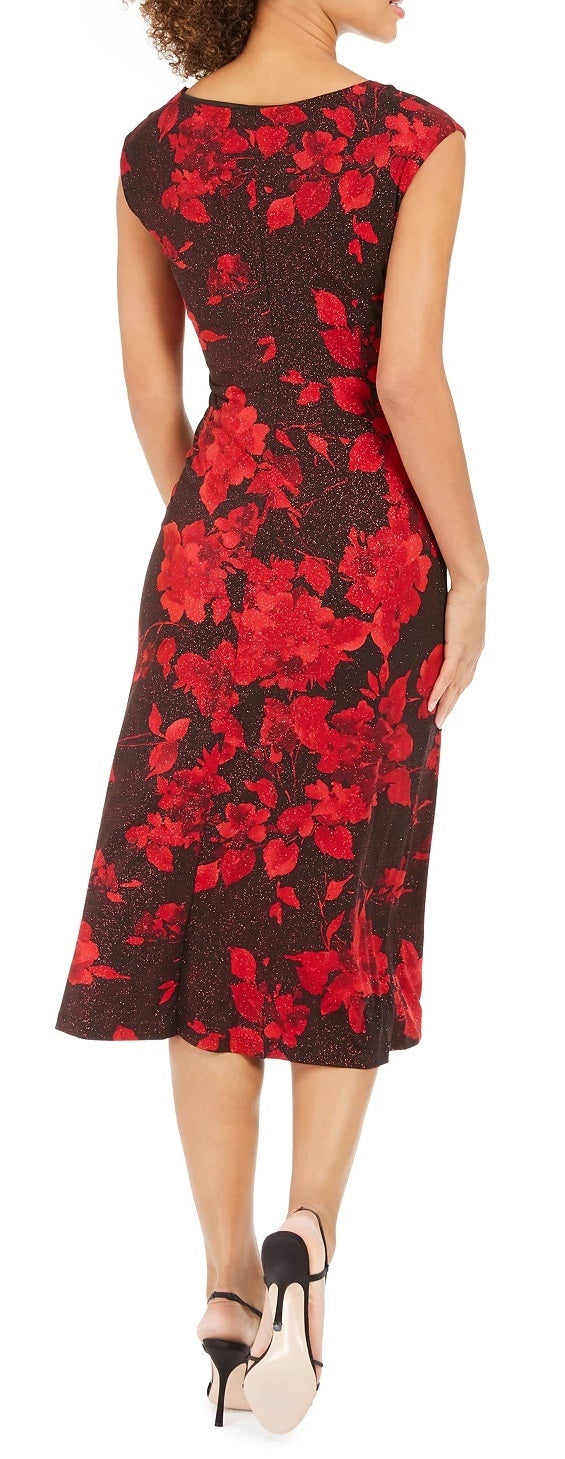 Connected Women's Cowl Neck Midi Sheath Evening Dress Red Size 6