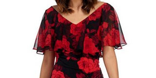 Connected Apparel Women's Petite Rose Flounce Sleeve Dress Red Size 10 P
