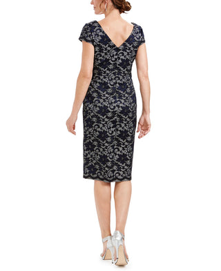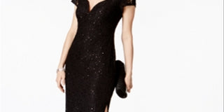 Connected Apparel Women's Embellished 3/4 Sleeve V Neck Knee Length Sheath Evening Dress Black Size 10