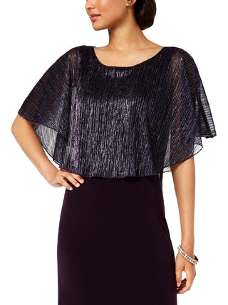 Connected Apparel Women's Metallic Cape Sleeves Maxi Dress Purple Size 10