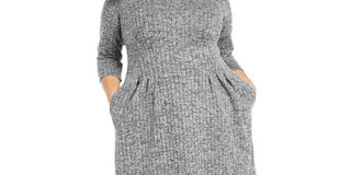 Connected Women's Apparel Pocketed Heather 3/4 Sleeve Jewel Neck Above The Knee Sheath Dress Gray Size 16W