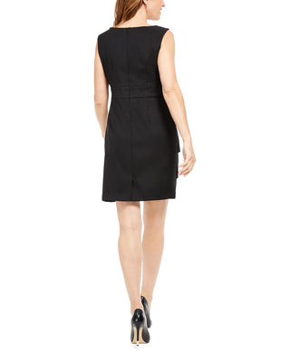 Connected Apparel Womens Floral Embroidered Shift Dress Black Size 8 Petite