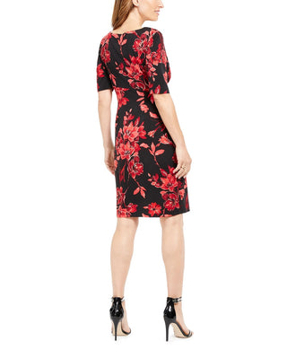 Connected Apparel Women's Floral Bell Sleeve Jewel Neck Above the Knee Sheath Dress Black Size 10