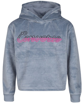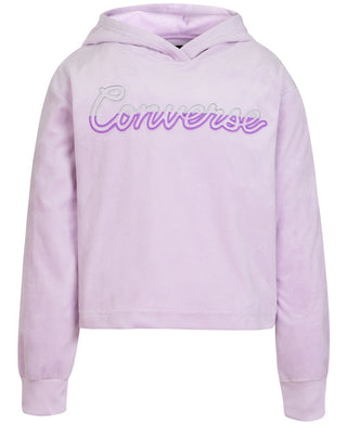 Converse Big Girl's Split-Logo Velour Fleece Hoodie Purple Size Medium