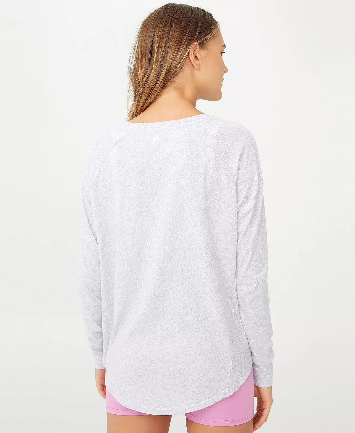 The active rib long sleeve top is a must-have addition to your active wear drawer| A relaxed fit| with long sleeves and extra length in the back| this active top is made to keep you cool and comfy while you work out