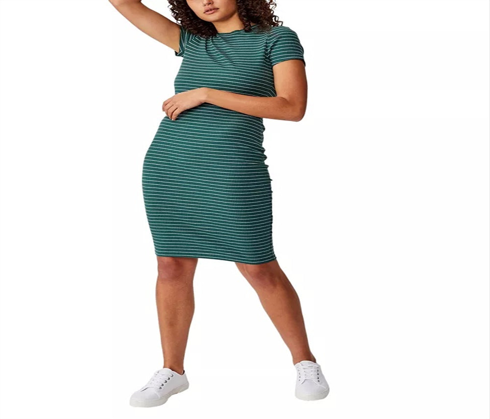 Cotton On Women's Essential Short Sleeve Bodycon Midi Dress Green Size XL