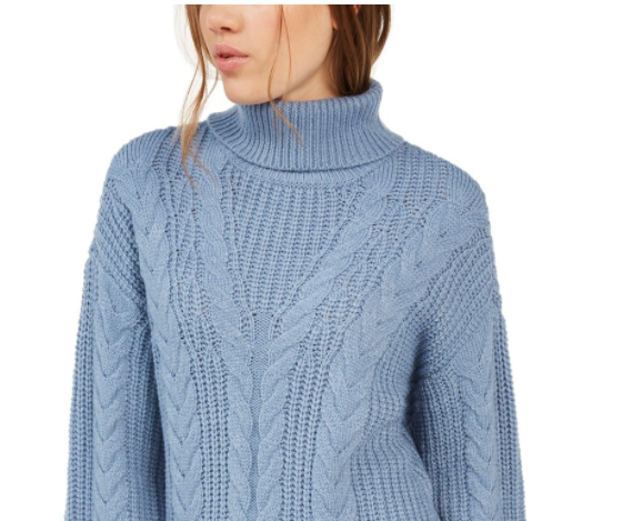Crave Fame Juniors' Turtleneck Cable Knit Sweater Blue Size Medium
