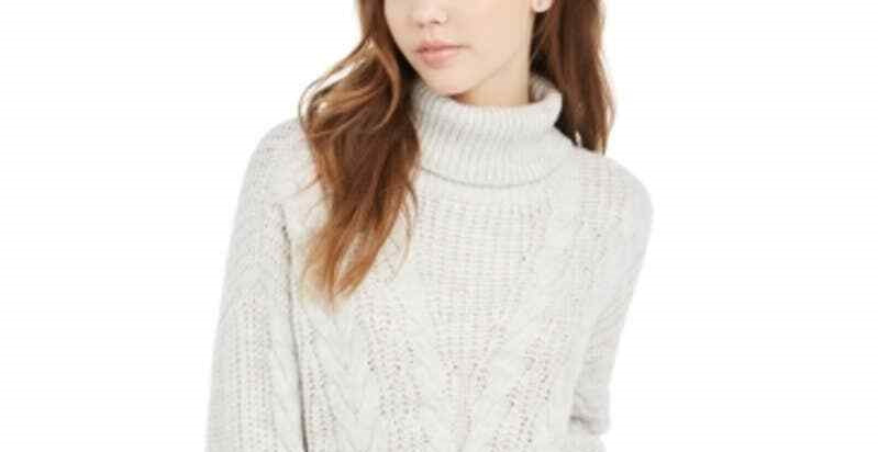 Crave Fame Junior's Turtleneck Cable Knit Sweater Silver Size Small