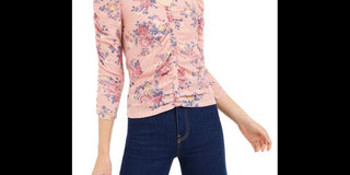 Crave Fame Junior's Ruched Floral Top Pink Size Large