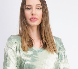 Crave Fame Juniors' Cozy Ribbed Tie-Dyed Top Green Size Small