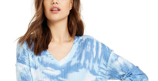 Crave Fame Juniors' Cozy Ribbed Tie-Dyed Top Blue Size Medium