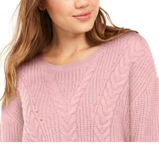 Crave Fame Women's Lace Up Back Cable Sweater Pink Size X-Large