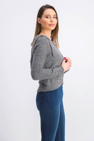 Crave Frame Juniors' Sherpa Trim Cardigan Gray Size Large