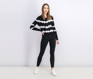 Crave Fame Juniors' Tie-Dyed Crew-Neck Sweater Black Size X-Small