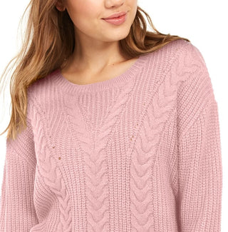 Crave Fame Women's Lace-Up Back Cable Sweater Pink Size Large