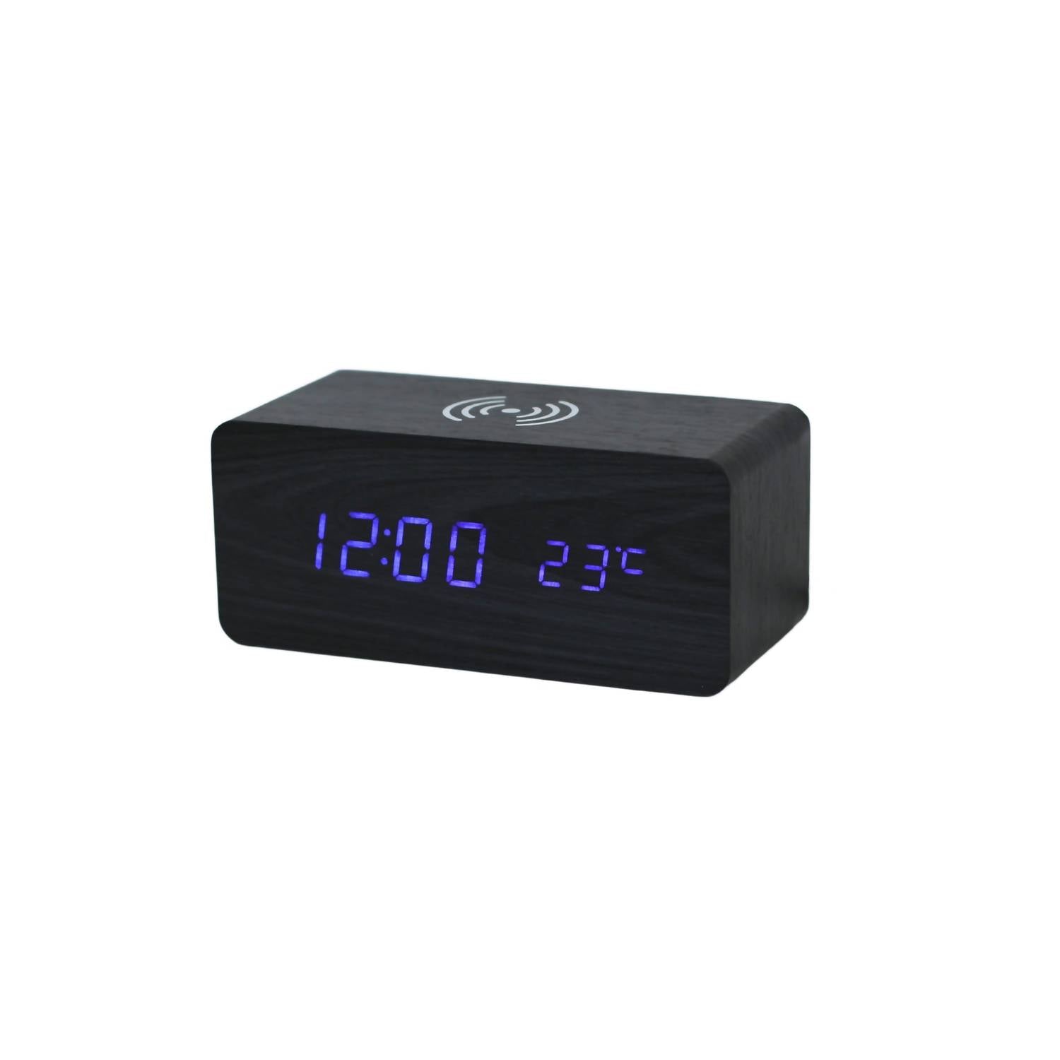 Compatible with most wireless charging cellphone models for a clutter-free charging experience. High-definition LED screen showcasing time, date, and temperature with adjustable brightness levels for comfortable viewing. Dimensions: 7.28 x 3.43 x 3.35 inches. Set up to 3 alarms to cater to your various working hours. Easily adjust settings with the SET key for a personalized wake-up routine. Activate power-saving mode with a simple tap or a sound above 60 dB to wake up the screen. Enjoy hands-free interactions with voice control functionality. Design: Crafted from delicate and smooth bamboo, adding an elegant touch to your room while serving as a functional wireless phone charger.