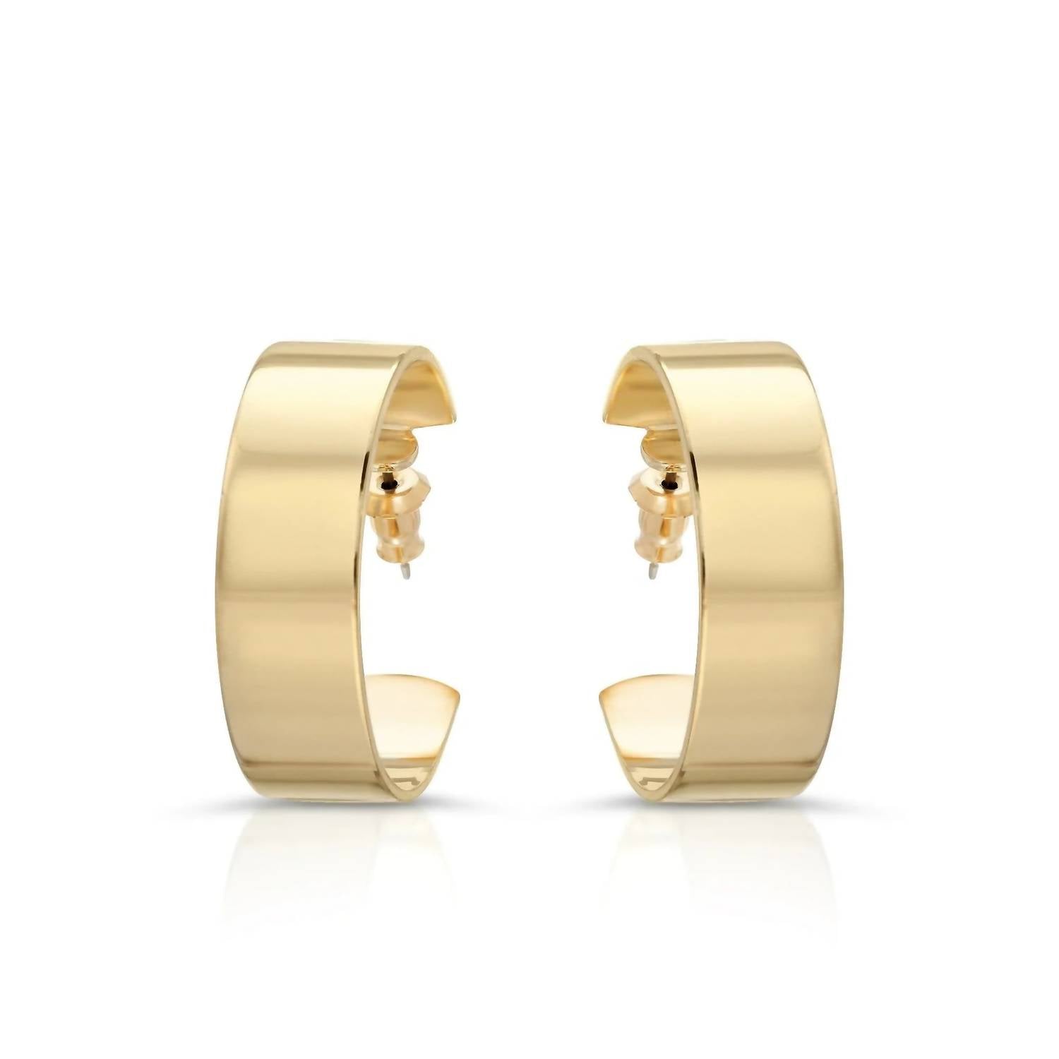 Classic earrings that will take you from season to season. Introducing the 1" Skylar Hoops by Eklexic, a luxurious accessory that combines elegance with sustainability. These hoops are finely handcrafted in the USA from recycled brass, available in exquisite 14K Gold or striking Rhodium finishes. They measure 3/8 inches in width and 1 inch in diameter, offering a classic and refined style suitable for any occasion. Closure: Push back. Elevate your daily wear effortlessly while embracing eco-conscious luxury.