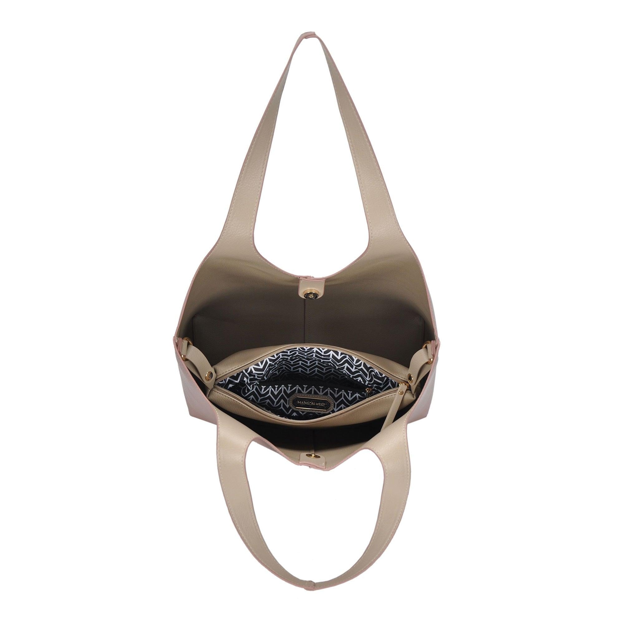 You don't have to compromise style and function anymore with the Elle tote. This hybrid bag adds trend-setting appeal with its scoop neck arm opening design, while still accommodating a 15 inch laptop, 40 oz. water bottle, and other items. Equipped with a secure magnetic snap button closure and a polyester pattern inner lining, the Elle tote allows you to utilize the tote and the inner pouch as separate bags or keep it all together for efficient organization.