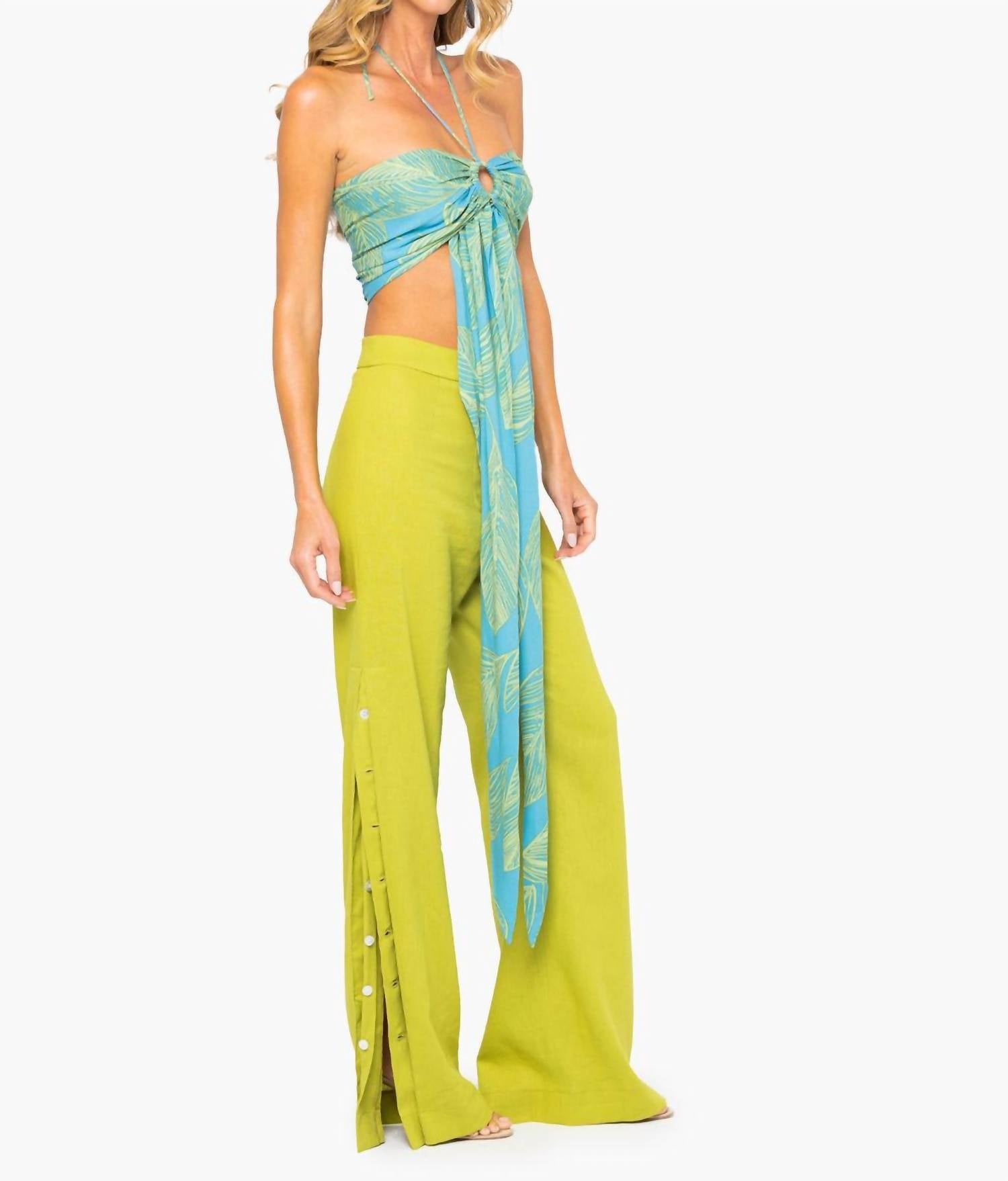 Discover the Olivia Top by JBQ, a striking sleeveless halter bralette. Crafted from a blend of 70% cotton and 30% bamboo rayon, this piece features an eye-catching elongated detail at the front. Its tie closure offers a secure and adjustable fit, making it a dynamic addition to your wardrobe. Machine wash.