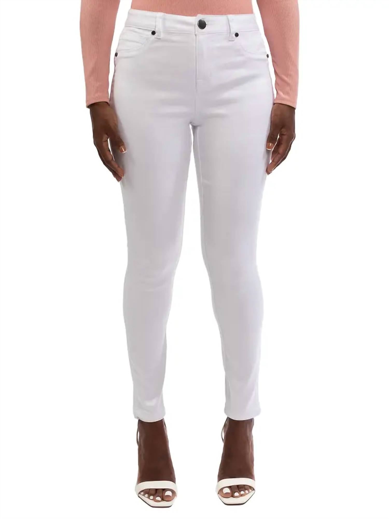 The perfect skinny jeans to wear with your favorite boots this season! Discover comfort and style with the Butter High-rise Ankle Skinny Jeans by 1822 Denim. Crafted from ultra-soft denim, these jeans promise a high-rise fit that flatters all body shapes with a skinny leg design. The trendy white denim wash highlights the classic 5-pocket design with faux front pockets, offering a chic, streamlined look. Seamlessly fitting an inseam of 28 inches with a front rise of 10 inches, these jeans are an essential addition to any wardrobe, designed for a pull-on closure.