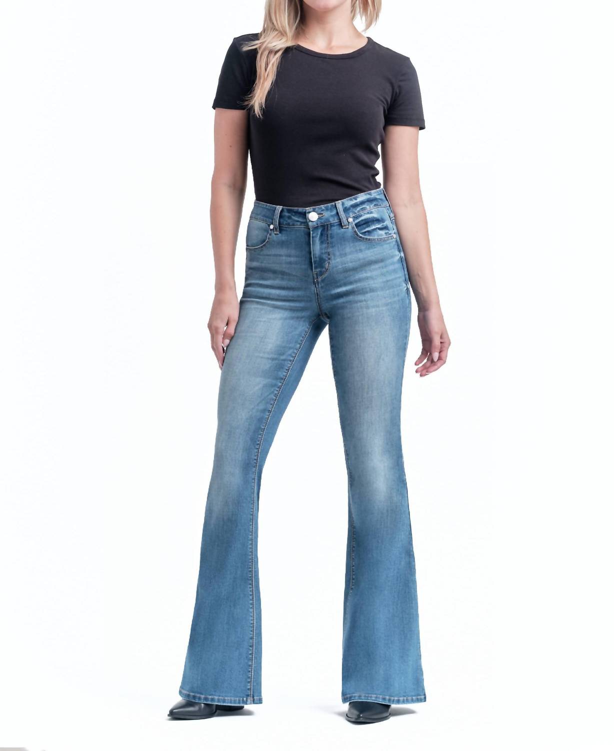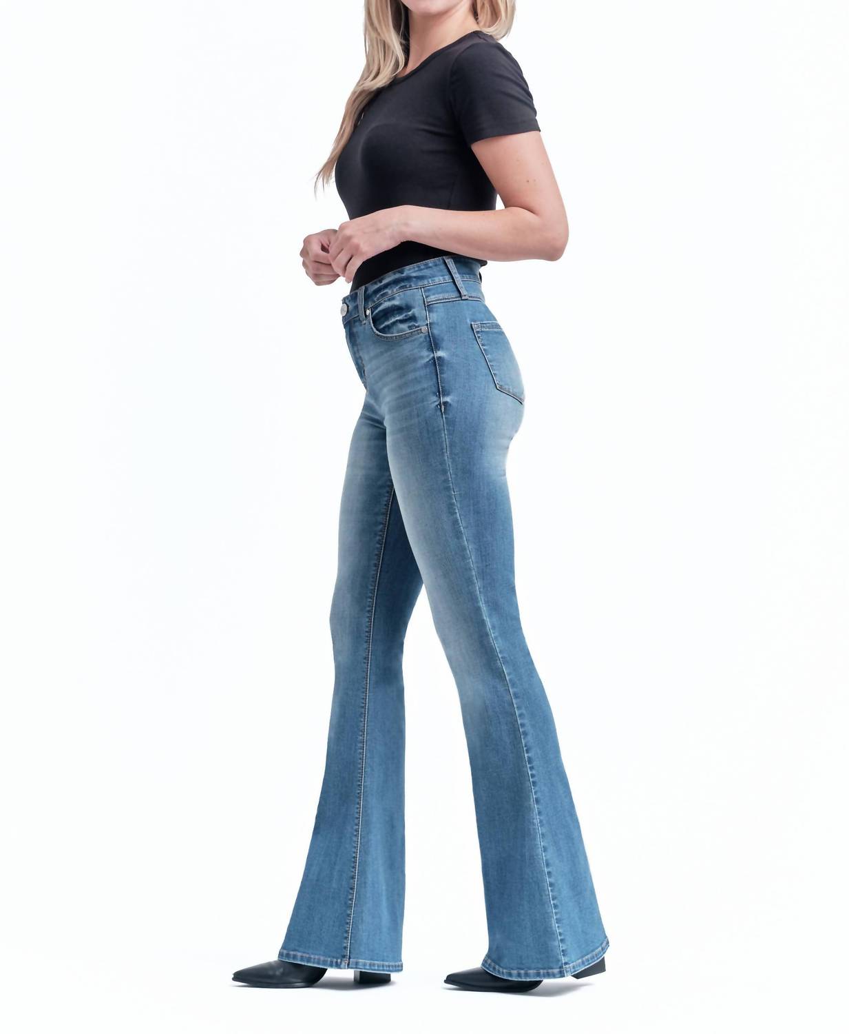 A flattering silhouette that's suprisingly versatile. The Mid-rise Flare Jean by 1822 Denim in the Jayden wash is a stylish addition to your wardrobe with its distinctly retro silhouette. Crafted from a solid Cotton Blend, these jeans feature a relaxed, flared leg fit that is both vintage and playful. Designed with a 9" rise and 23" leg opening, they offer an authentic vintage appeal, complete with classic 5-pocket styling and a convenient button closure. Machine washable, these jeans showcase a versatile, medium wash perfect for engaging Fall trends and workwear occasions.