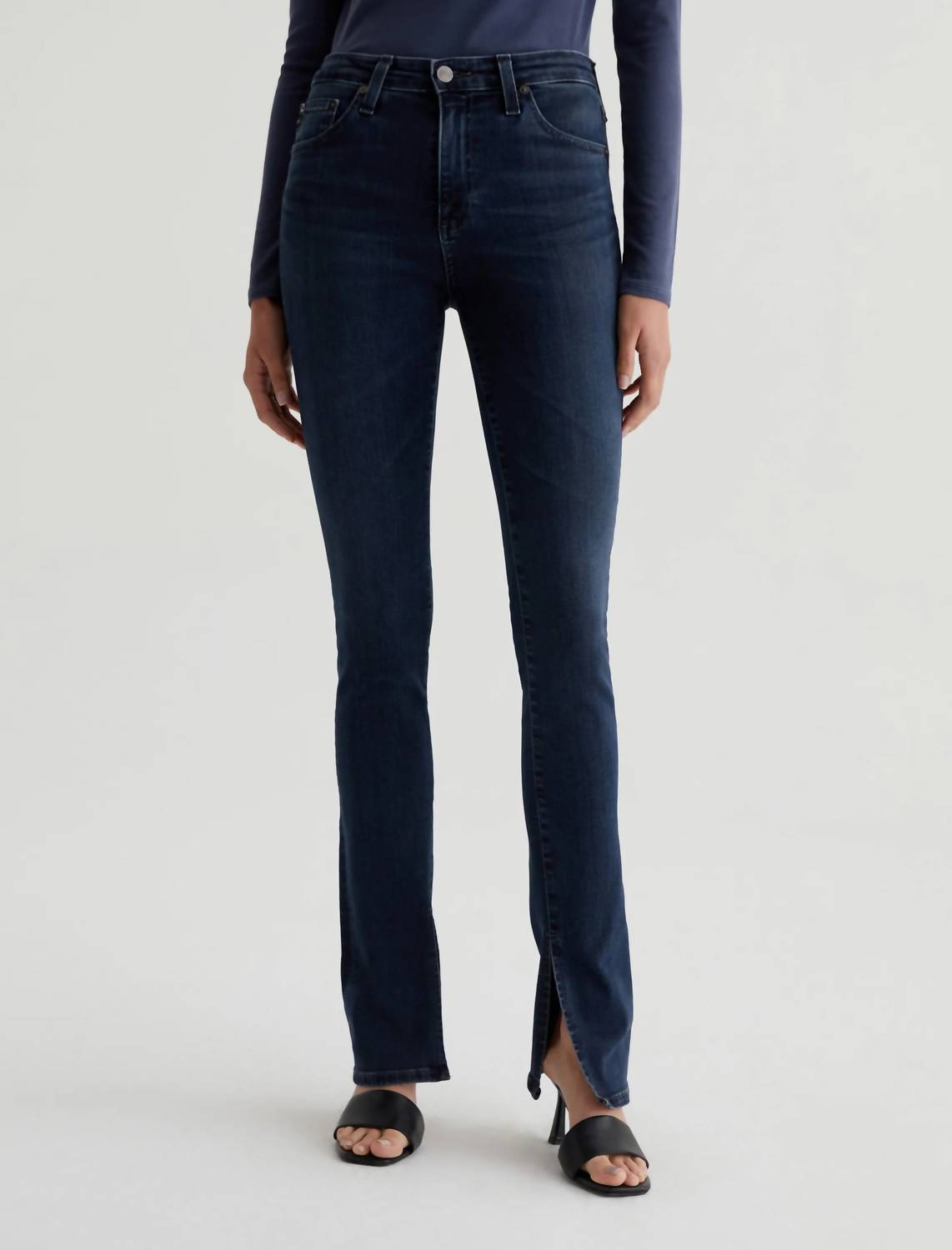 These must-have jeans are fit to perfection. Discover the Mari Extended High-rise Slim Straight Jeans by AG Jeans, a stylish choice in a dark Empire wash. Crafted from 9.5 oz. Premiere Stretch Indigo Denim, these jeans feature a high-rise waist and a flattering slim fit with straight legs, designed to elevate any look. Composition: 91% Cotton, 8% Polyester, 1% Spandex. Machine wash, tumble dry. With a 32" inseam, these jeans promise both comfort and style.