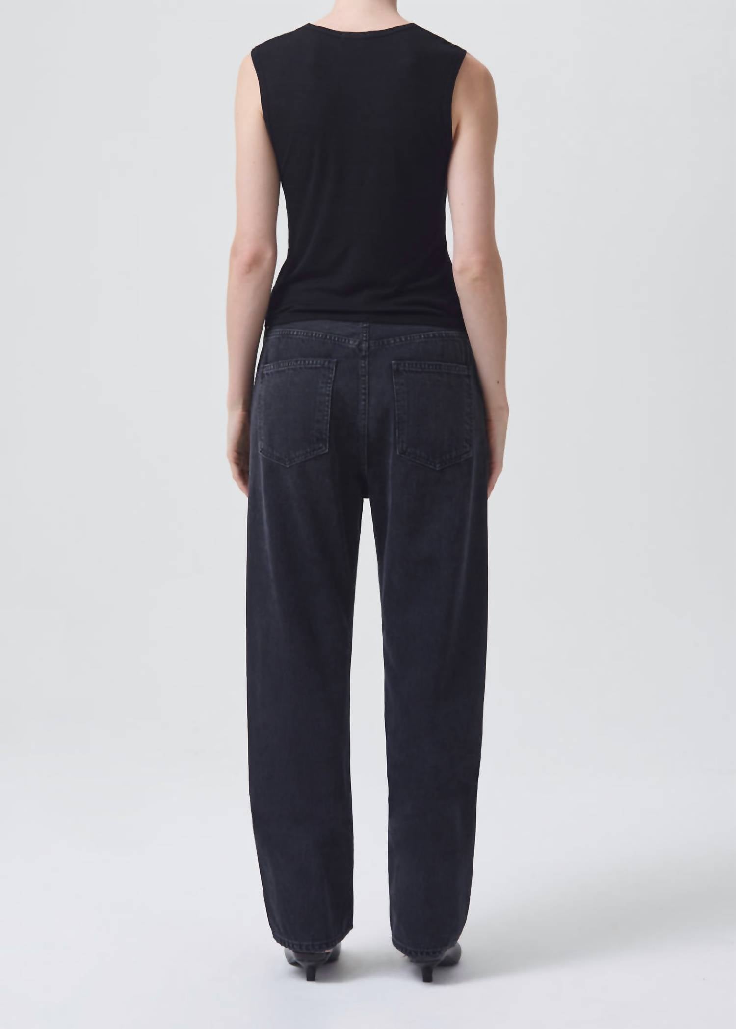 This classic straight leg jean has a perfect fit and goes with just about everything. Experience the relaxed elegance of the 90s Straight Leg Jeans by AGOLDE, perfect for both everyday wear and special occasions. These jeans sit mid-rise with a 12.75" rise, feature a loose straight leg, and boast a 29" inseam for a timeless silhouette. Constructed from 100% non-stretch organic cotton, they soften with each wash, combining style with comfort. Closure: Button fly. Care: Machine wash cold inside out with like colors, do not bleach, and tumble dry low. Model is 5'10" wearing a size 27.