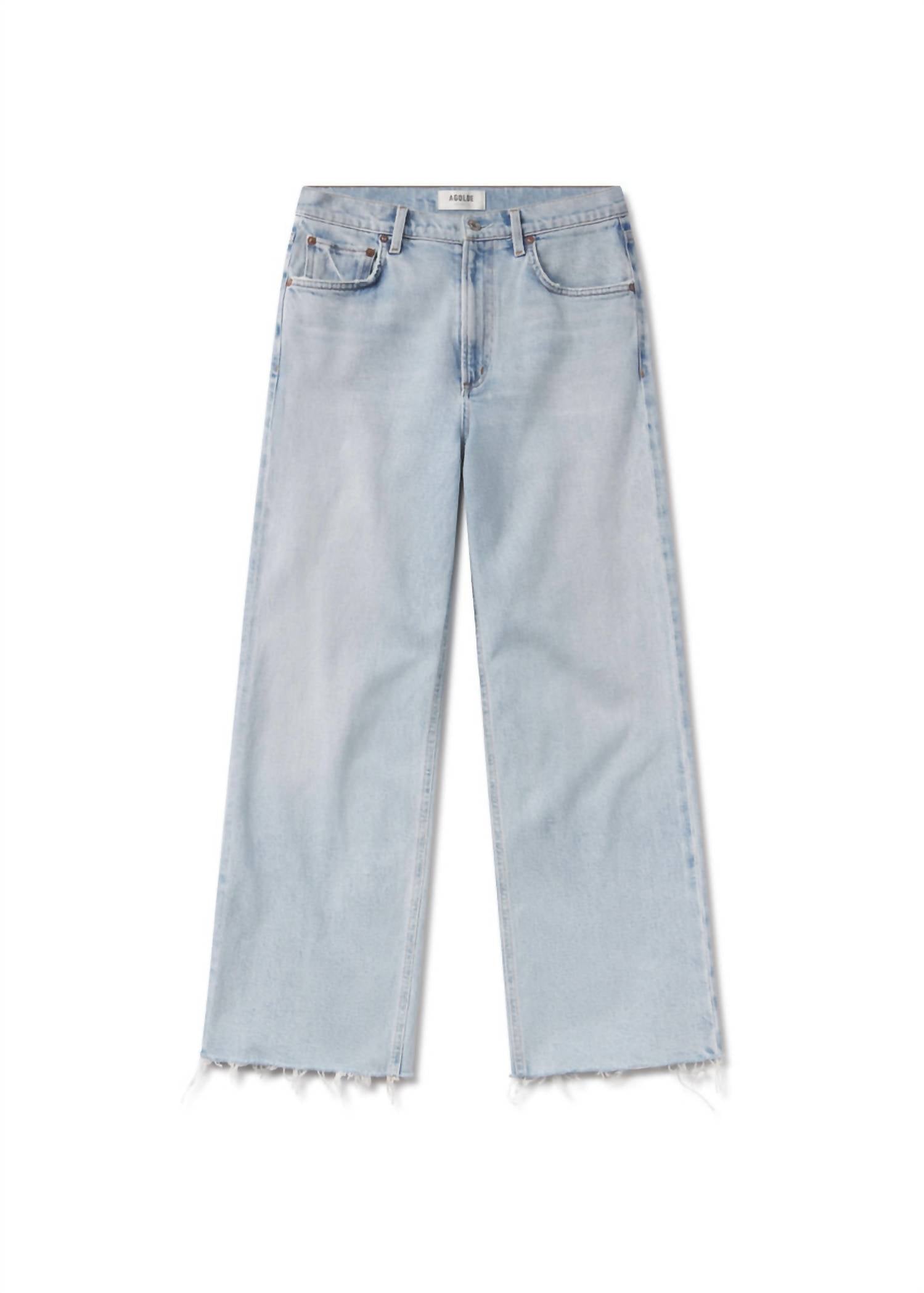 Just as cute as they are comfortable. Meet the Ren High Rise Wide Leg Jeans by AGOLDE, an essential addition to your casual collection in a timeless Beam shade. With a high-rise waist and relaxed fit, these jeans boast a flattering 12.25" rise and 27.5" inseam, while the wide-leg style enhances their laid-back charm. Crafted in Turkey from a sustainable blend of 99% regenerative cotton and 1% elastane, they ensure comfort with a hint of stretch. Zipper fly. Machine wash cold inside out with like colors, do not bleach, and tumble dry low. The model is 5'10" and wears a size 27.