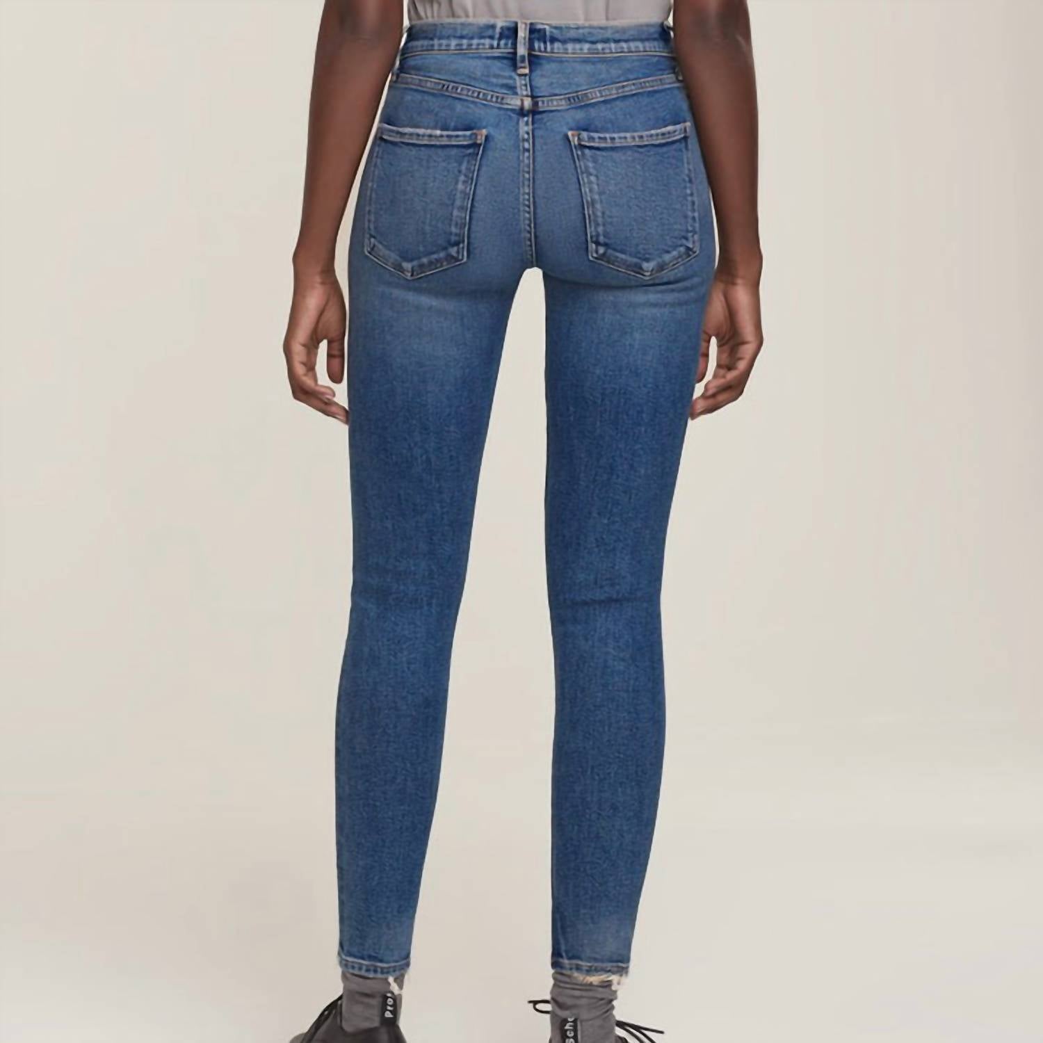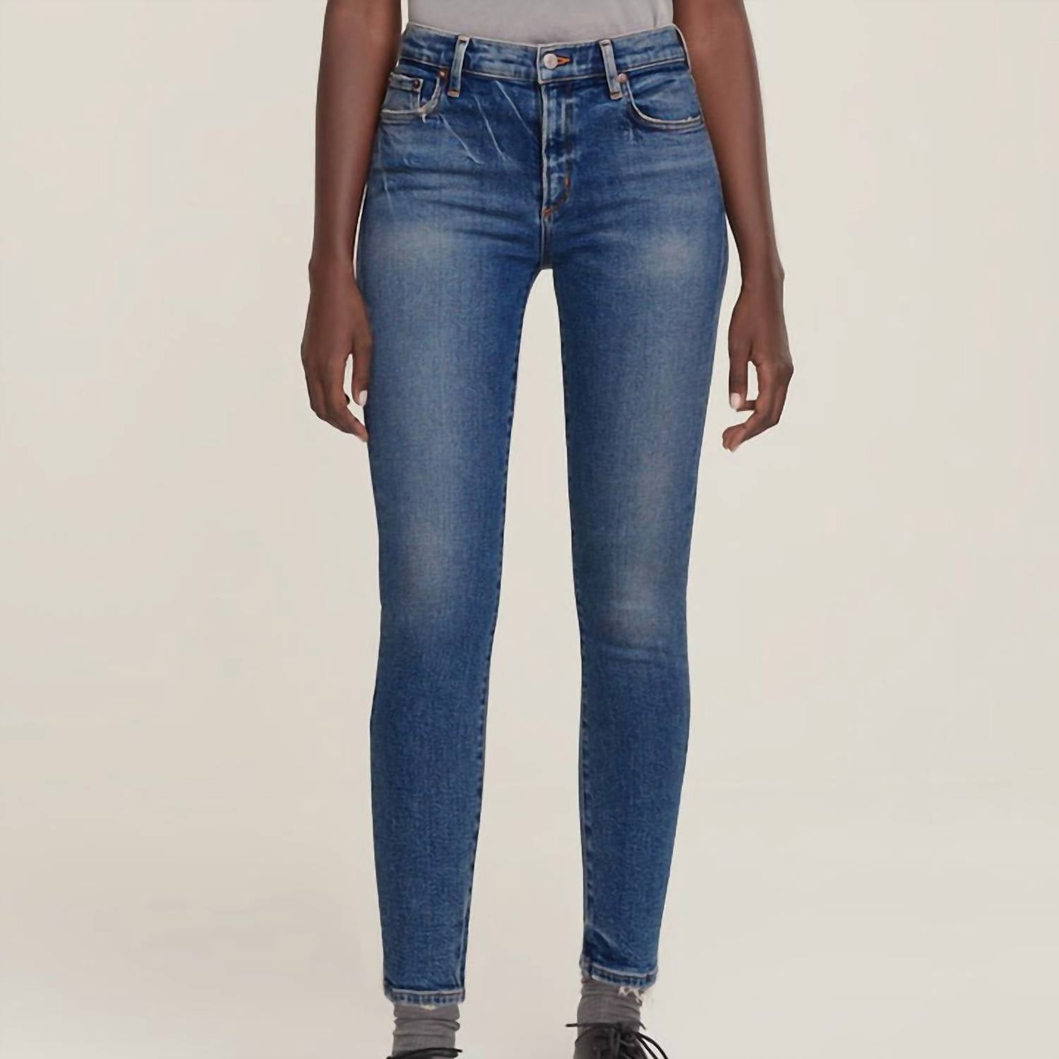 Everyone needs a good pair of skinny jeans and this is a style you'll keep reaching for no matter the season. Meet the Sophie Speedway Midrise Skinny Jeans by AGOLDE, a stylish choice in a classic blue hue. These jeans feature a zipper fly with button closure and a flattering 5-pocket design. Crafted from a cotton blend with 90% cotton, 6% recycled cotton, 3% polyester, 1% elastane, they offer just the right amount of stretch. With a mid-rise waist, a 10" rise, and a 27" inseam, these jeans ensure comfort and a sleek silhouette. Care for them easily with machine washing.