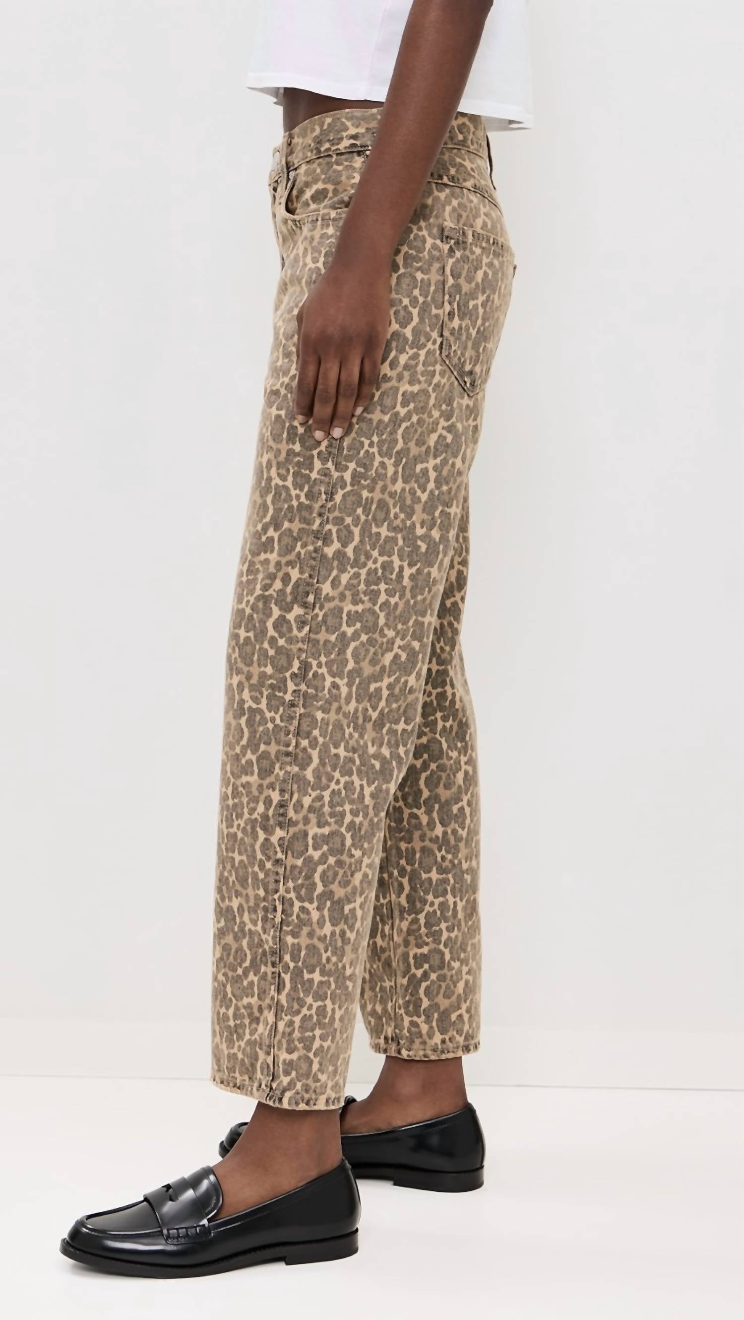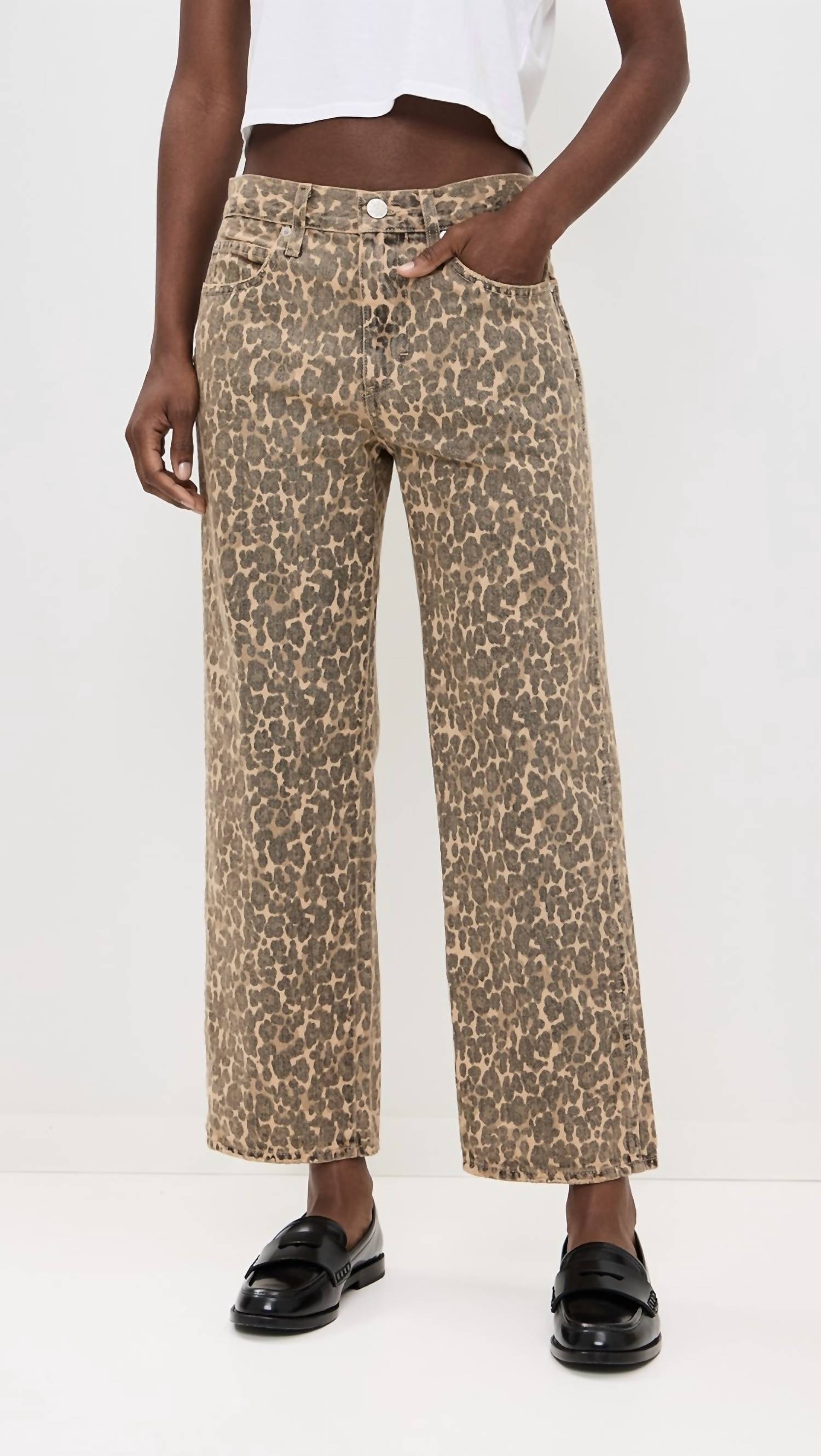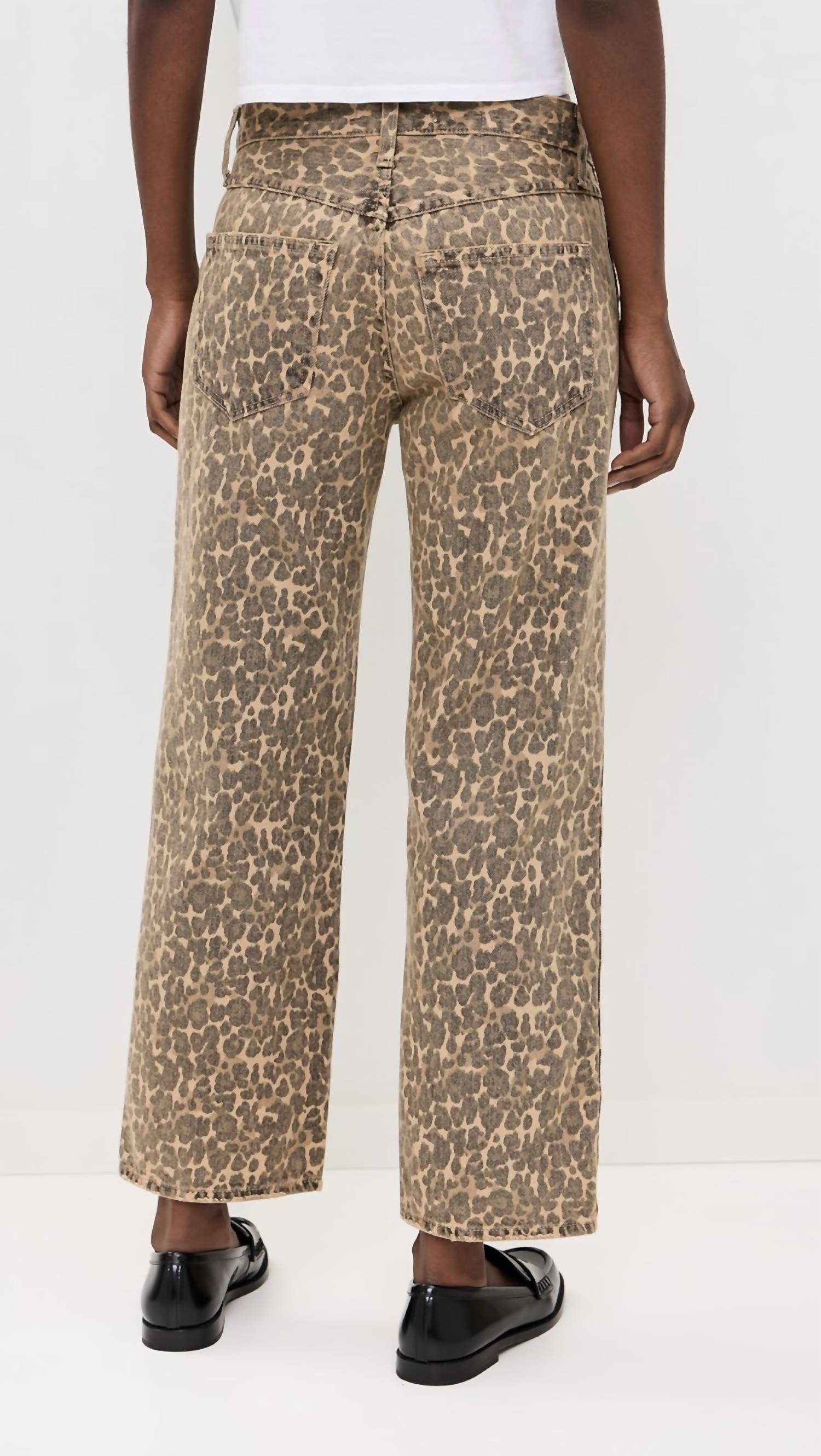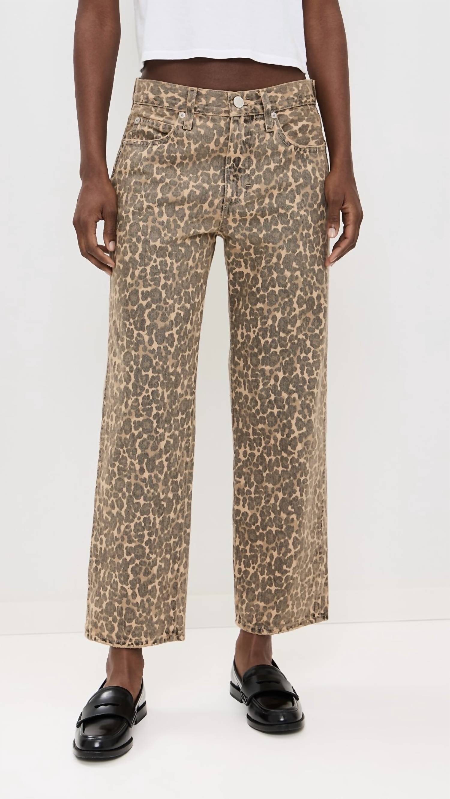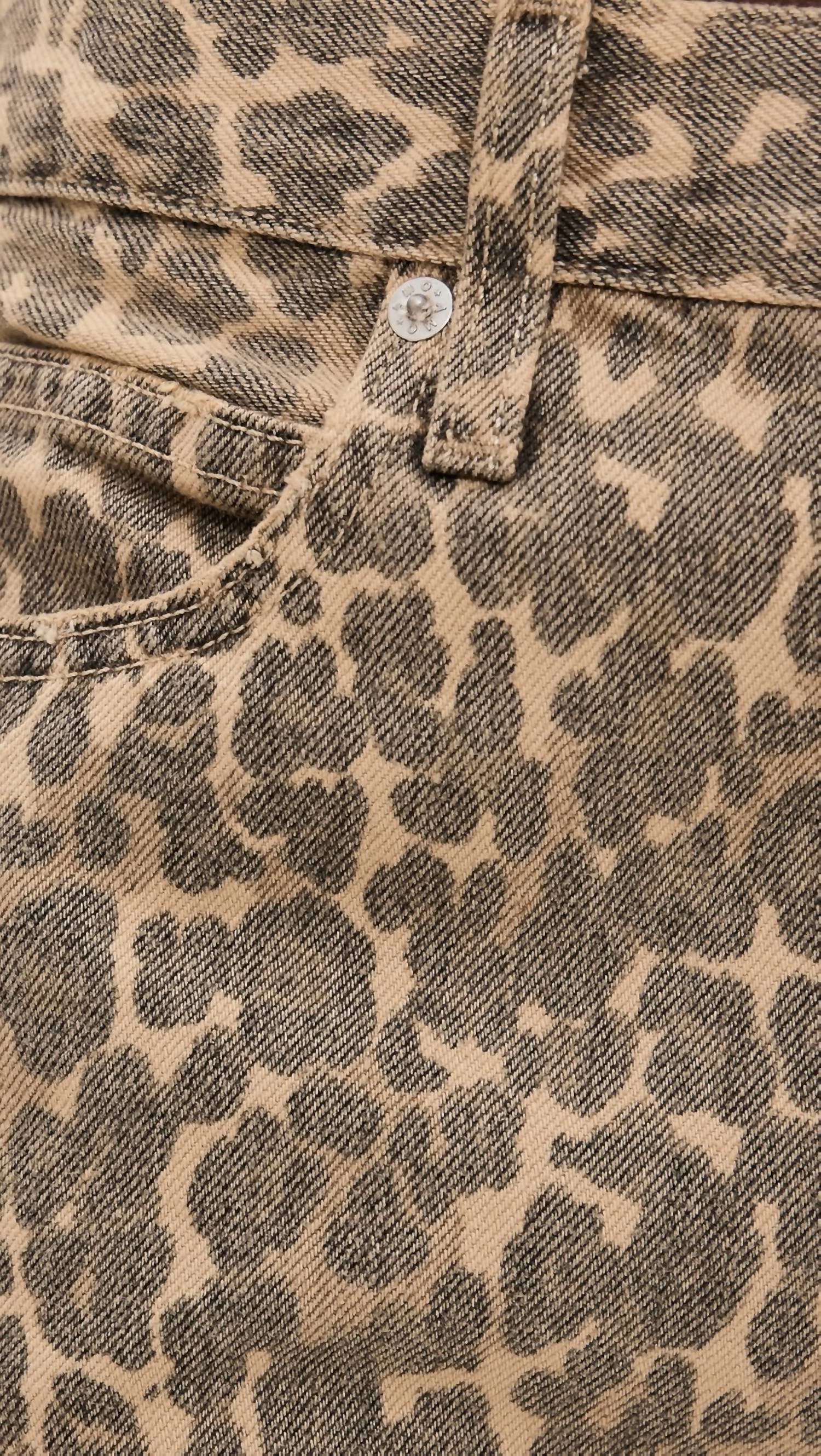 These must-have jeans are fit to perfection. Meet the Billie Jeans by AMO, perfect for adding a touch of 90s flair to your spring wardrobe. These women's jeans feature a high rise with a flattering rise of 10.75 inches and a relaxed fit with a wide straight leg style. Made from 100% Cotton, they sit low on the hips and have a unique leopard pattern with thoughtful distressing for individuality. Closure: Zip fly and button closure. Care: Machine wash cold and opt for line drying to maintain their stylish look. Measurements are based on a size 27, with an inseam of 26.5 inches and a leg opening of 17.5 inches.