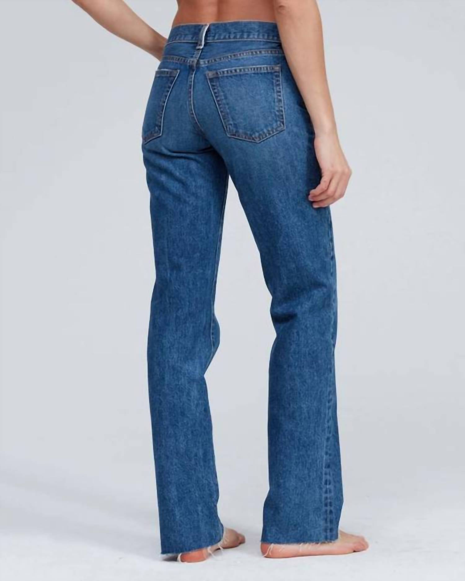 Women's Long Low Rise Straight Jean in Sundowner. Low rise. Straight leg. Raw hem. 5 pocket styling. Non-stretch denim. Machine wash cold, separately; hang dry. 33" Inseam.