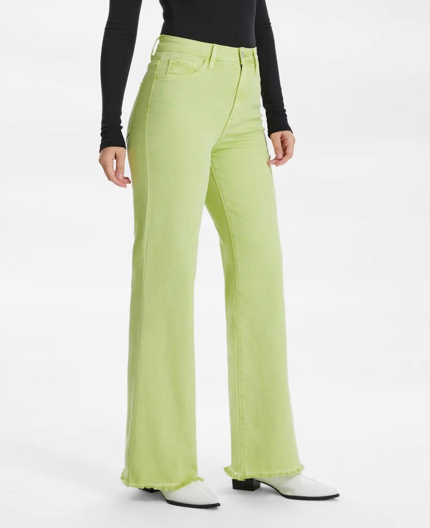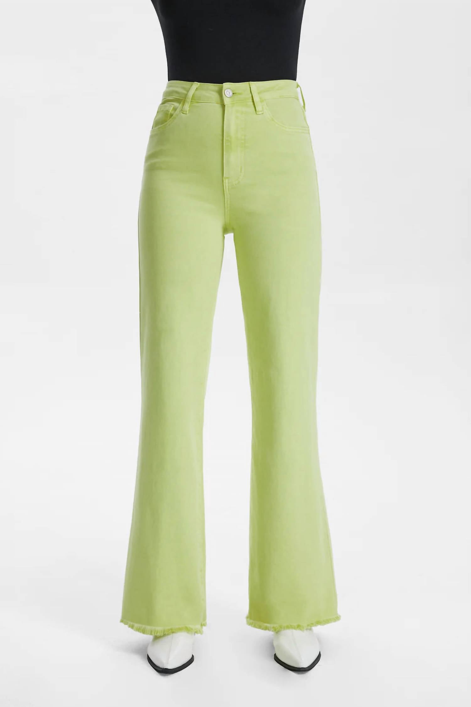 Discover the Stella High Rise Wide Leg Jeans by Bayeas, a must-have for your spring wardrobe in a trendy pistachio shade. Designed with a relaxed fit and solid pattern, these jeans boast a flattering high rise with an 11 1/2" rise and a 32" inseam, complemented by a raw hem and button closure. Perfect for women embracing the quiet luxury trend, these jeans feature pockets for practicality. Care is simple with machine wash and tumble dry instructions, making them ideal for a St. Patrick's Day celebration or a chic dinner party.