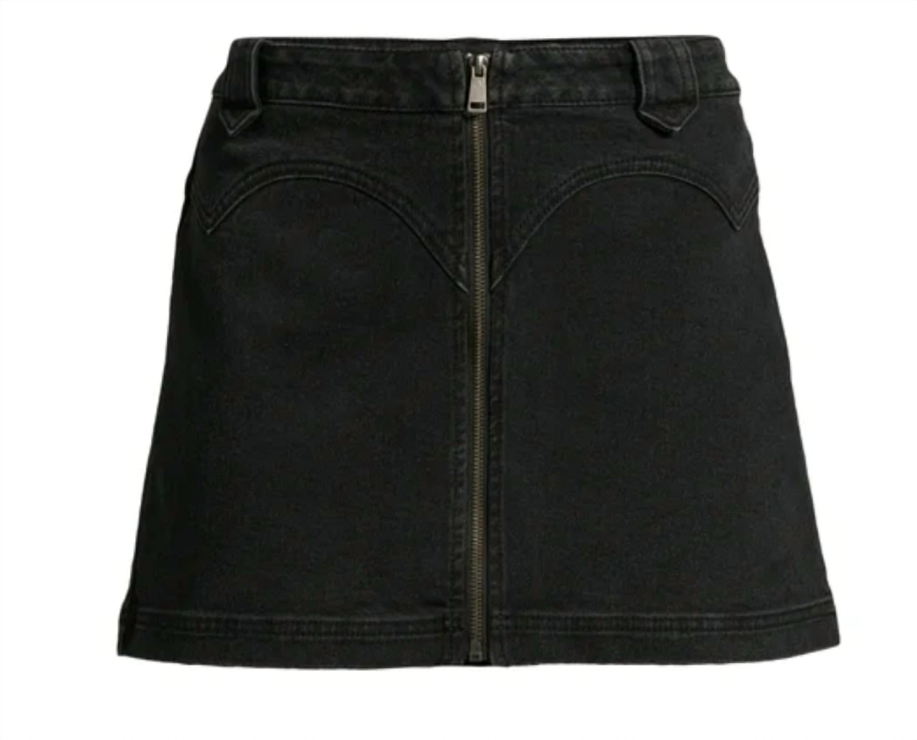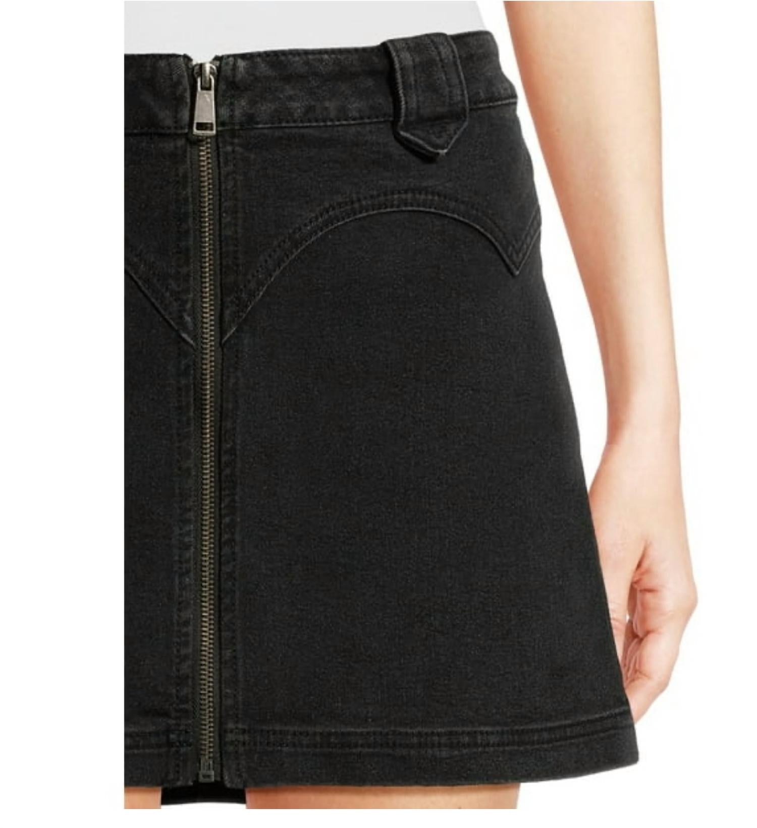 The perfect mini skirt does exist. Elevate your spring streetwear collection with the Women's Black Jean Skirt by Bayshore. Designed as a solid, high-fashion mini skirt, it features a sleek zip closure for easy wear. Pair this versatile piece with your favorite tops for a chic vacation ensemble. Country of origin is not specified.