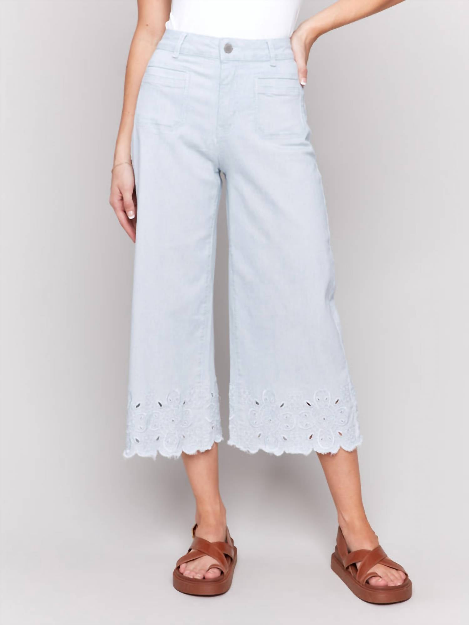 Charlie B - Wide-leg Cropped Jeans With Scallop Embroidered Hem