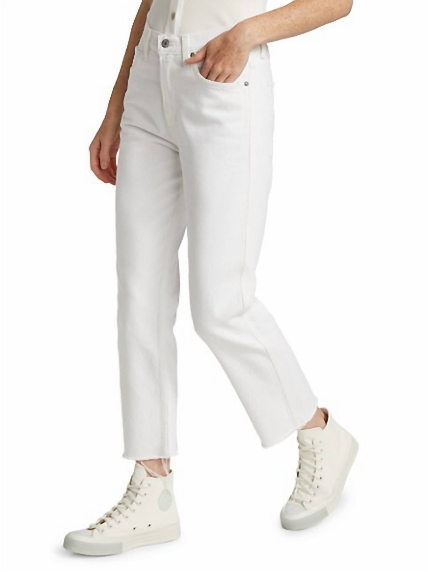 We especially love this cropped jean with a cute pair of slides or sandals. High-rise jeans are cut in a relaxed stovepipe silhouette finished with frayed edges. Five-pocket style. Zip fly. Unfinished hem. Machine wash. Rise, about 11.5”. Inseam, about 26”. Leg circumference, about 15.5”. Model is 5'10" tall wearing a US size 4.