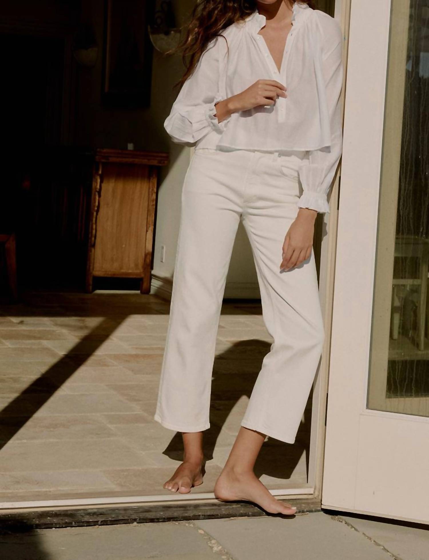 Discover the Palma Straight Jeans by Citizens of Humanity, crafted in a high-rise, straight-leg silhouette. Made from a soft cotton blend in a chic Soft White hue, these jeans provide both comfort and style. Originating from Turkey, they feature a practical button closure and include pockets for convenience. For easy care, machine wash and tumble dry these classic fit jeans. With an inseam of 27.5 inches and a rise of 11 inches, their refined shape offers a polished look, perfect for every occasion from casual to church. 94% cotton, 4% polyester, 2% elastane.